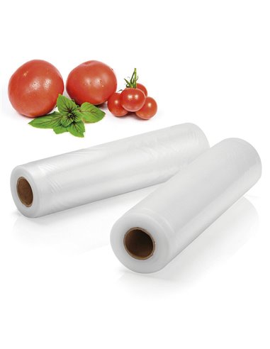 ENVASADORA REC.BOLSA 2 ROLLOS 28CMX6M Recambio envasadora al vacío Multiplica por 5 la vida de los alimentos y mantiene intactas sus propiedades nutritivas. Envasado al vacío y sellado, higiénico y saludable. Sistema manos libres. Recambio 2 rollos 28 cm x 6 m.