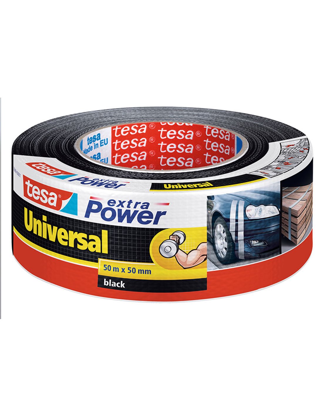 CINTA AMERICANA EXTRA P. 50MMX50M. NG Cinta americana TESA Extra Power Universal Soporte tejido plástico PET y algodón recubierto con adhesivo de caucho natural. Adhesión en superficies rugosas. Se corta con la mano. 50 m x 50 mm. Negra.