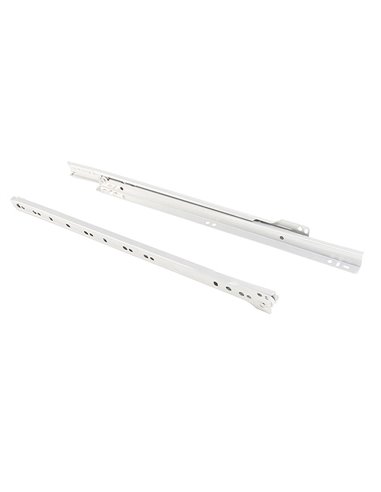 GUIA CAJON. BEIGE. 450 MM. 5 JUEGOS. Guía metálica cajones Acero pintado color beige. Guías de ruedas con extracción parcial y cierre con caída. Longitud de la guía L 300 mm. Carga máxima 20 kg. Se puede montar con tornillo euro con cabeza plana sobre un agujero previo de D. 5 mm. Bolsa de 5 juegos. 450 mm.