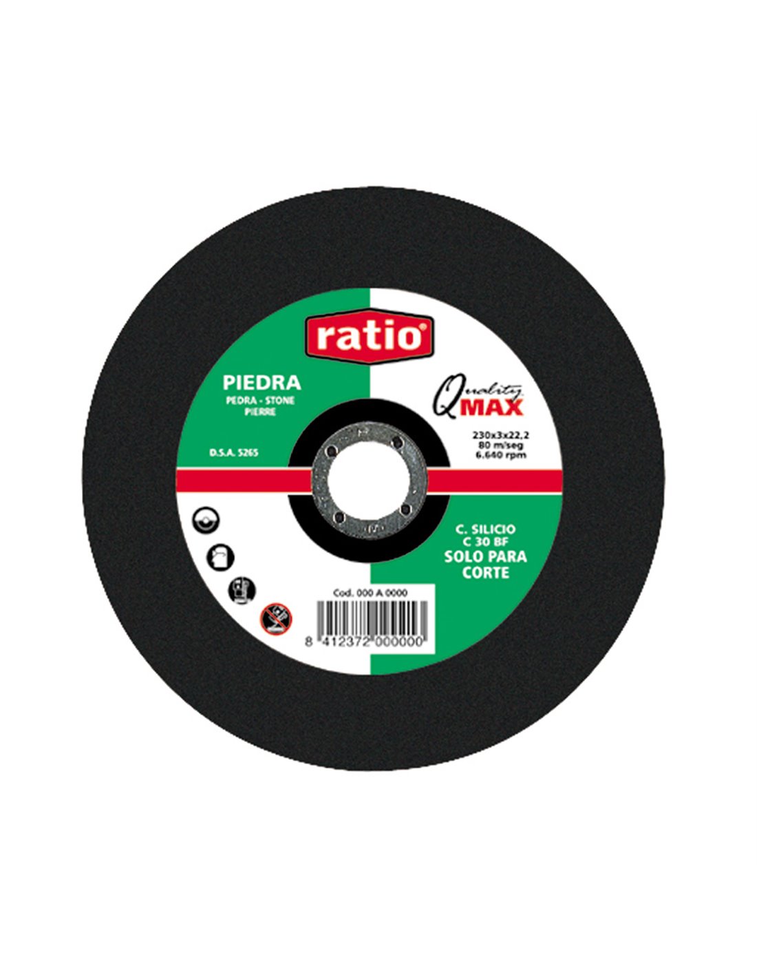 DISCO CORTE PIEDRA 115X2.5X22 RATIO Disco corte piedra RATIO Quality Max. Carburo silicio C30-BF. ø 115x2,5 mm.