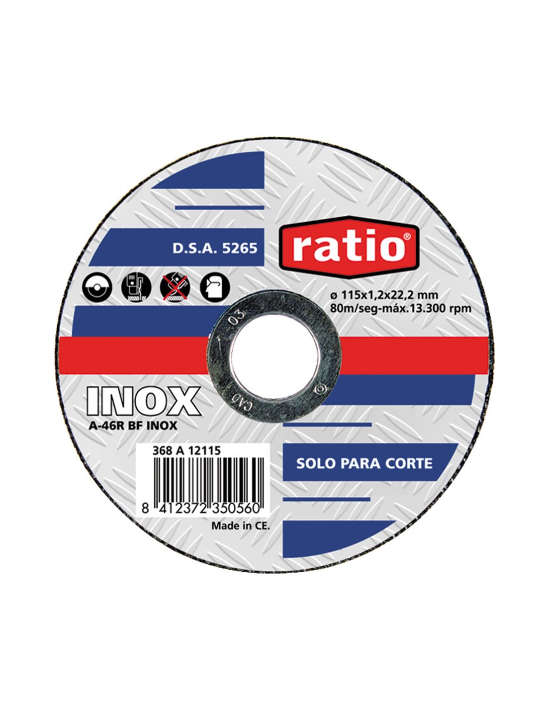 DISCO CORTE ABRAS.230X1,8MM.INOX.RATIO Disco corte inox/metal RATIO. Corindón. Para chapa y perfiles finos en acero y acero inox. ø 230x1,8 mm.