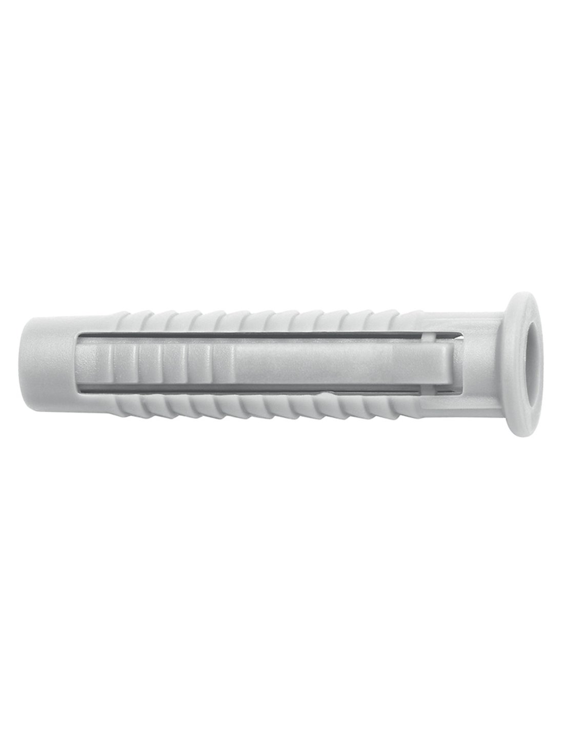 TACO NYLON FX Nº6 CAJA 100 UNID. Taco nilón CELO FX-NEXUS Estriado. Con Valona. Aletas antirrotación. Fijación de materiales macizo y huecos. Para usar con tirafondosTornigrap®, velox, FM, 571 y TIC. ø 6 mm. 100 unid.