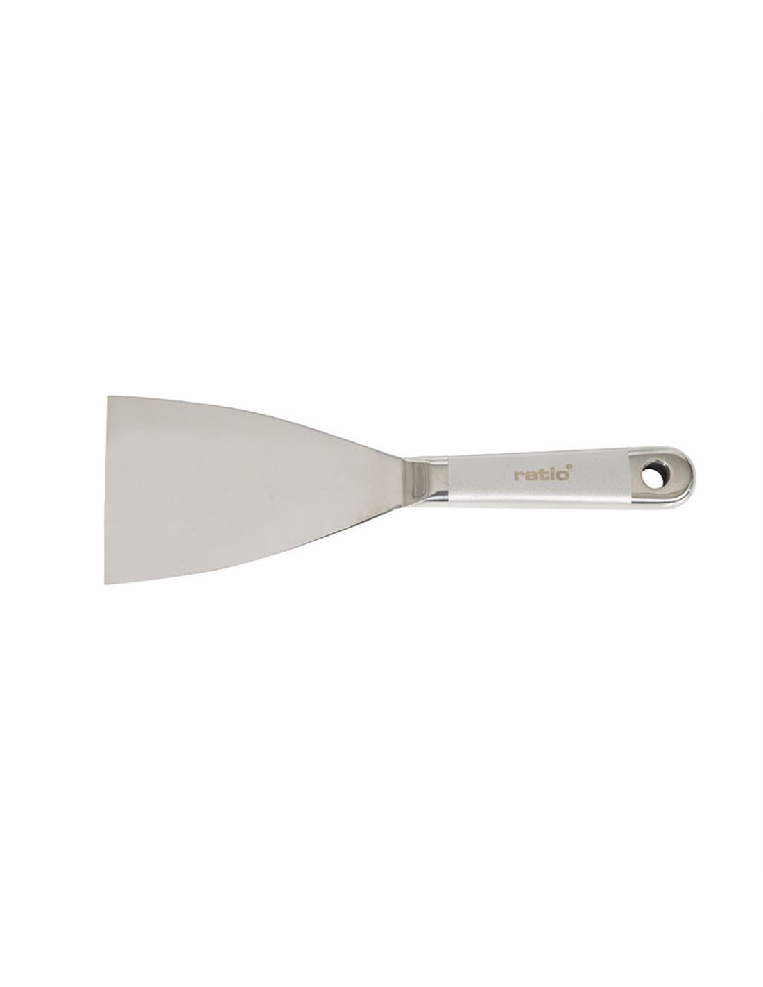 ESPATULA ACERO INOXIDABLE 75MM.RATIO Espátula pintor RATIO acero inox flexible Hoja acero inox flexible y mango hueco. Mango de 113 mm de largo. Espesor hoja: 1,5 ~ 0,4 mm. 75 mm.