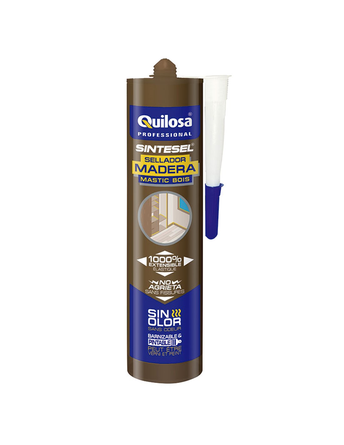 SELLADOR SINTESEL WENGUE 300 ML. Sellador acrílico siliconado QUILOSA Sintesel Especial para el sellado de juntas entre piezas de madera y construcción. Sin olor, pintable y barnizable. No ennegrece. Wengué. Cartucho 300 ml.