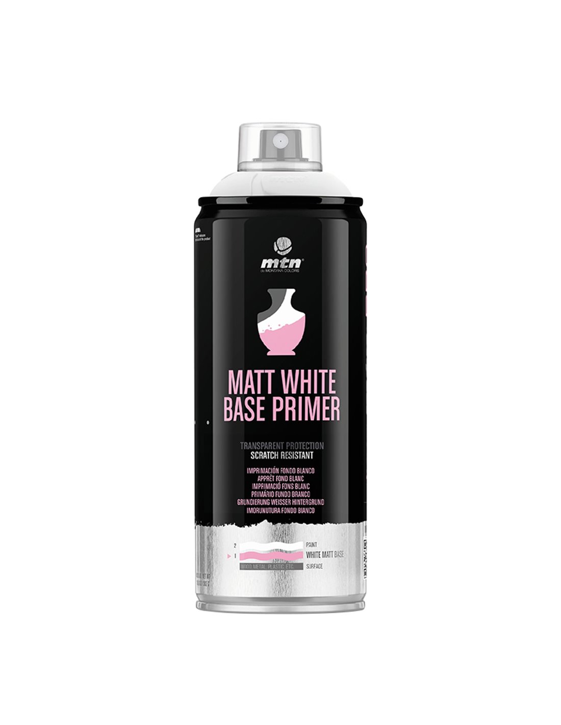 SPRAY IMPRIMACIÓN FONDO BLANCO 400ML Imprimación spray fondo blanco MTN Capa previa, de fondo, para el posterior pintado de colores fluorescente, fotoluminiscente o colores muy vivos sobre fondos oscuros. Se puede utilizar también como capa de acabado. Excelente poder de cubrición. Durabilidad del color. No amarillea. 400 ml. Fondo blanco.