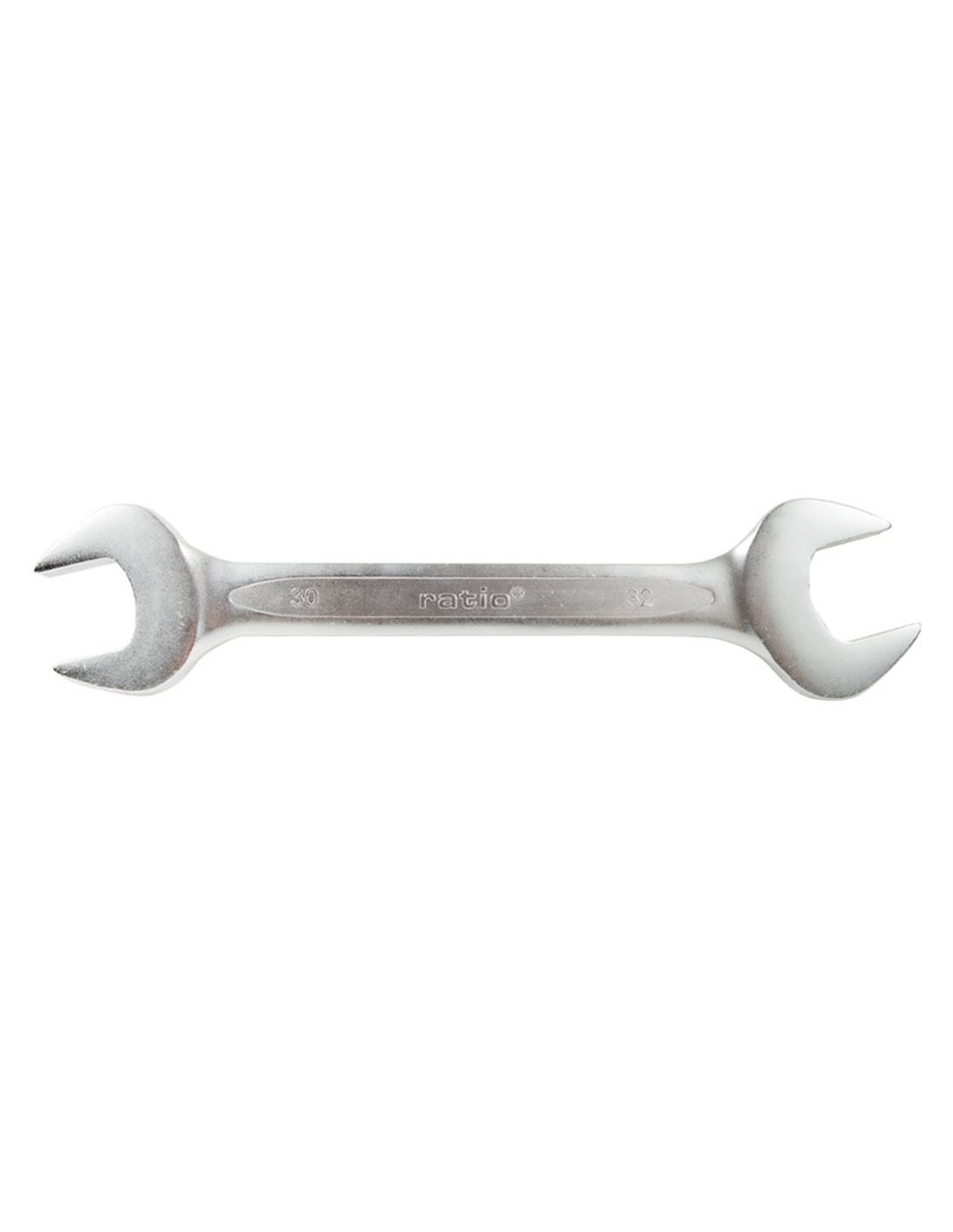 LLAVE FIJA 2 BOCAS CHR-V 30X32 RATIO Llave fija dos bocas RATIO 6573 Acero cromo-vanadio satinado. Cuello de llave más ancho para aumentar la tensión de apriete. DIN 3110. 30x32 mm.