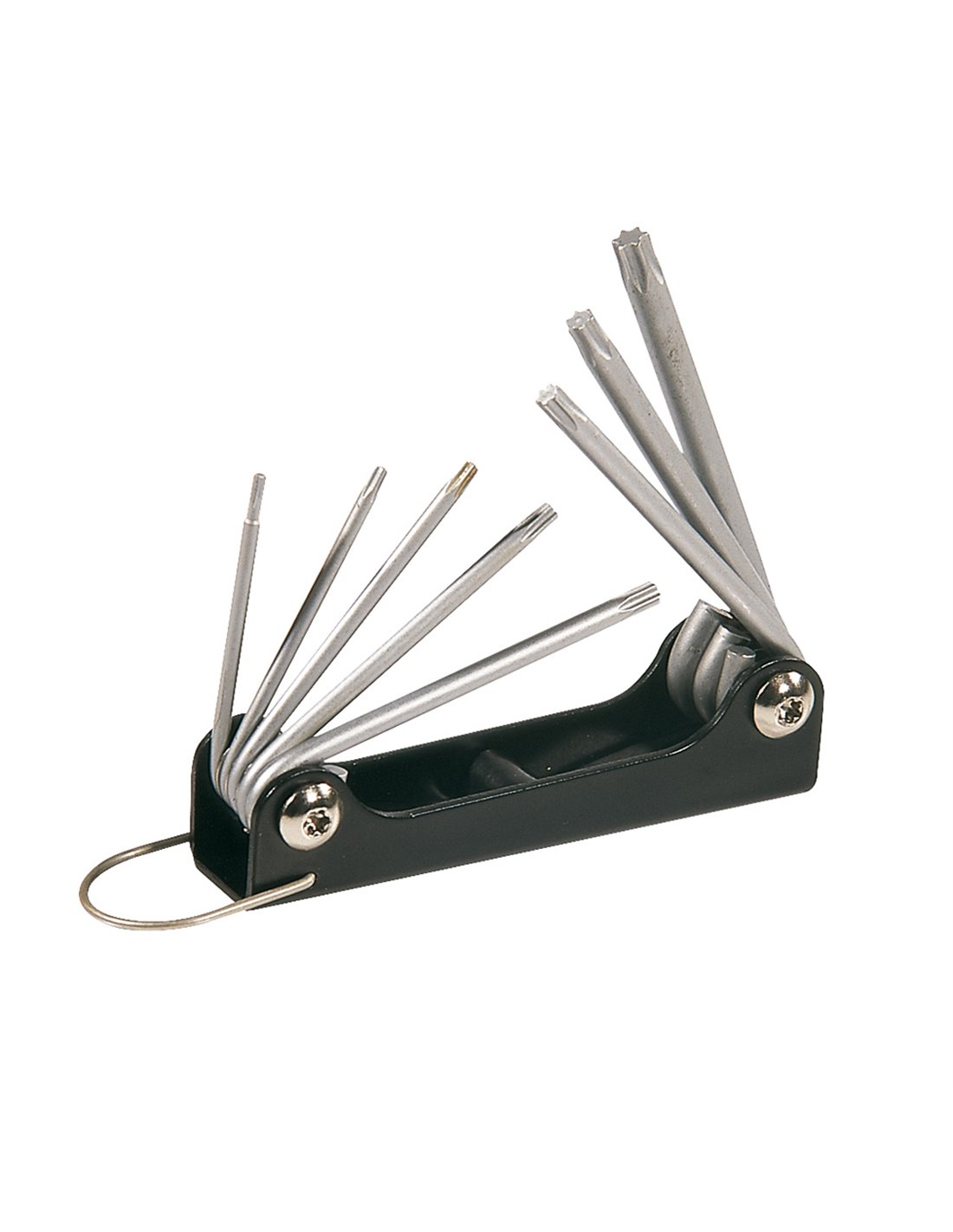 LLAVES TORX JGO.8 NAVAJA PL. RATIO Juego 8 llaves Torx RATIO 6293 Navaja plegable 8 piezas. Cromo-vanadio satinado. T9-10-15-20-25-27-30-40.