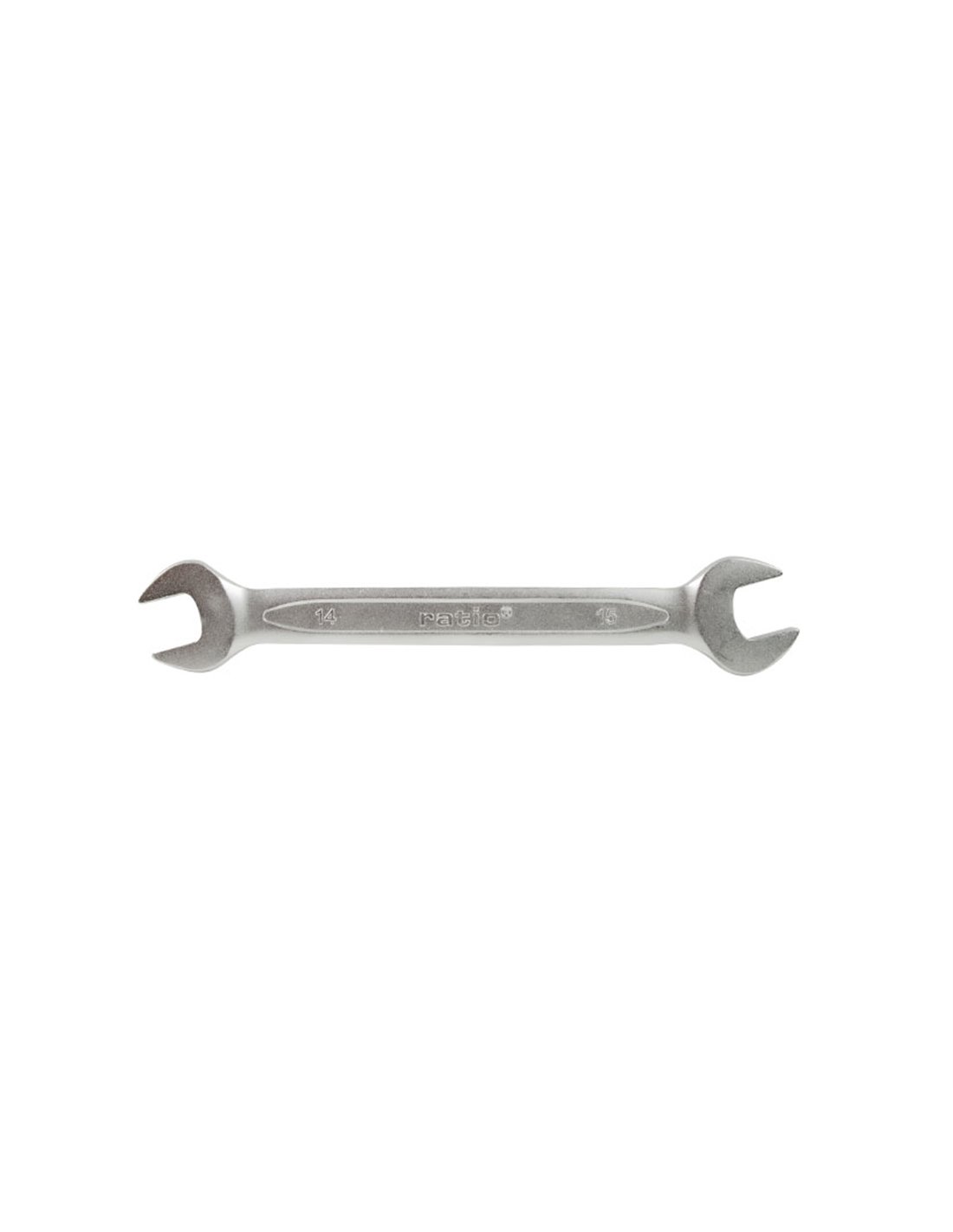 LLAVE FIJA 2 BOCAS CHR-V 14X15 RATIO Llave fija dos bocas RATIO 6573 Acero cromo-vanadio satinado. Cuello de llave más ancho para aumentar la tensión de apriete. DIN 3110. 14x15 mm.