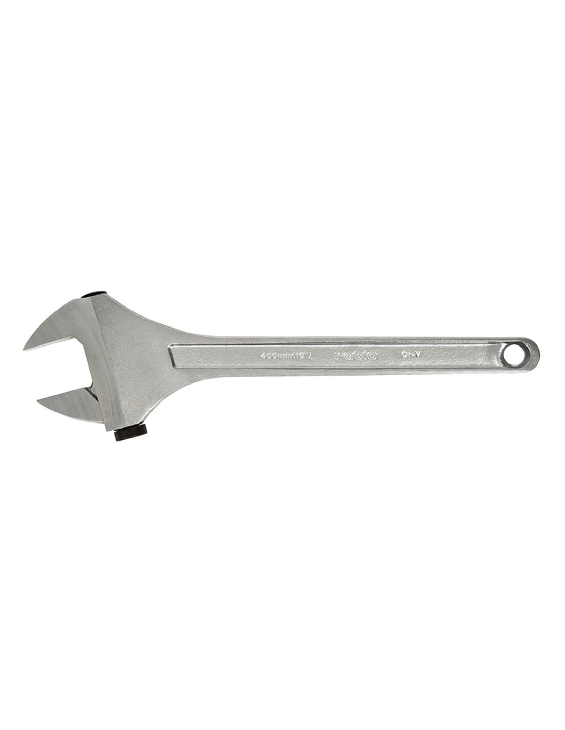 LLAVE GRADUABLE CR-V 20" RATIO Llave graduable moleta lateral RATIO 7760 Acero cromo-vanadio cromado y bocas pulidas. Mangos y mandíbula forjados en caliente con tratamiento térmico en toda la pieza. Cabeza con ángulo 15º que permite su uso en espacios reducidos. Escala milimetrada. 20\"-500 mm.