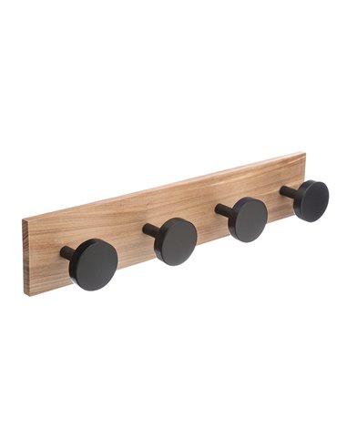 PERCHA PARED MADERA 4 POMOS NEGROS