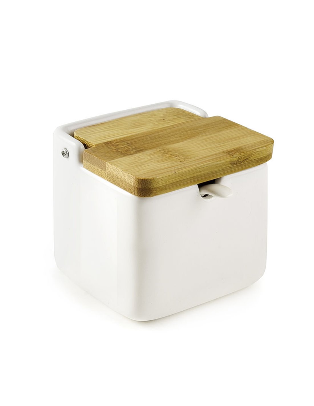 SALERO/AZUCARERO CERAMICA TAPA BAMBOO Salero cerámica IBILI Cerámica y bambú. Cuadrado. 8,5x8,5xh.9 cm. Con cucharilla cerámica.