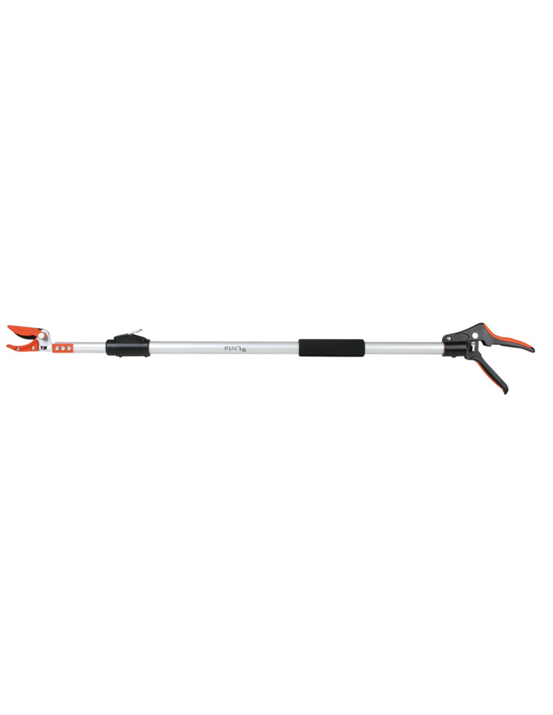 TIJERA PODA TELESCOPICA 1-1,5MT.LISTA Tijera podadora telescópica LISTA 6357 Mango extensible 100-150 cm. 5 posiciones de ajuste intermedio (cada 12,5 cm.) Hoja de corte en acero SK5 con revestimiento antiadherente. Mango ergonómico giratorio 180º. Sistema de pinza para sujetaflores desmontable. ø corte máx. 8 mm. \r\nMango extensible 100-150 cm.
